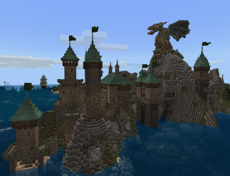 Explore a huge medival world with many cities and kingdoms! Ride dragons and fight off unique mobs!